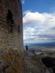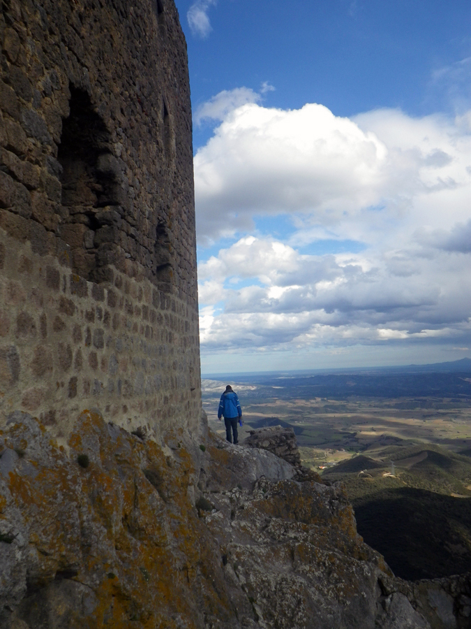 We carried on our day up into the mountains to one of the Cathar castles, Chateau de Queribus. It was perched on the top of a cliff edge over looking the Pyrenees. I don’t think we’ve been to a castle so high up before! We walked up a steep path and almost got blown away at the top, the wind was so strong!! We went exploring up and down lots of winding stairs, Ben spent most of the time trying to work out the castles defences as per usual…we’re turning into castle geeks! It was lots of fun 🙂