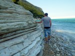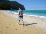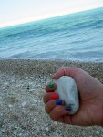 Dad had mentioned that in Sirolo, not far from our campsite there was the ‘best beach bar in the world’ (rated in 2007 by the Guardian!!) so we thought we’d go and see if it was still there!! We wound down to a car park at the bottom and walked down a short flight of steps on to the most amazing beach! It was really unexpected and took our breath away a little. It was a long pebble beach with lots of coves and the most amazingly blue water, it reminded me of Whitsunday islands in Australia …and best of all it was partially deserted, apart from a few lonely people scattered up the beach, sat by themselves. They all looked a little bit weird as if they were waiting to go somewhere, or were soon to be taken to The Beach, as in the film! It was a pretty windy day which made it feel a little chilly so no swimming in the sea, instead we walked round the bay, over rocks and in coves and then sat for a while taking it all in and picking up cool looking shells. There were a couple of small bars the other end of the beach but nothing that looked like a Guardian prize winner, maybe they appear in the summer months?! What a fun/ random day!