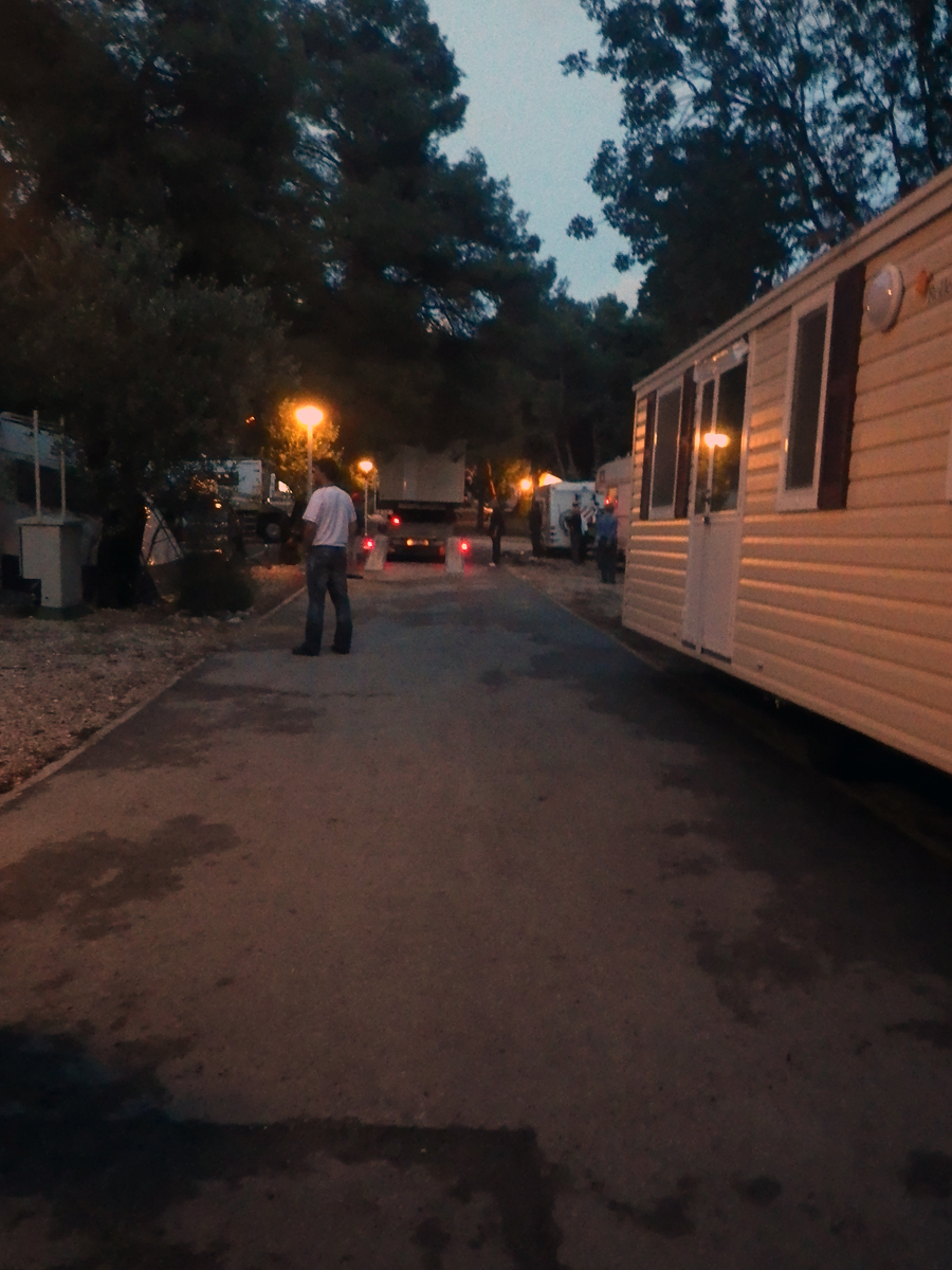 We were casually chilling in the caravan, when all of a sudden we could hear chatting and banging coming from outside, we peeped out and saw a huge lorry reversing into the campsite delivering two new chalets. The camping community were out trying to direct the truck under the trees in the dark, it seemed to be the highlight of everyones evening!!!