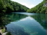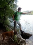 We drove the few miles from our campsite to the park entrance. Handed over our 110 Kuna and entered. The entrance was ridiculously busy, full of every nationality. We wound our way down the zig zagging path to the lakes below, the water was an amazing turquoise colour, little pools were linked with cascading waterfalls. We walked along the wooden paths over the lakes like a herd of sheep, it was super busy, every few minutes you’d stop in a people queue waiting for the camera happy people ahead to move on. The path then forked and everyone went in the direction of the ferry which took you across the largest lake, we carried on straight and walked along the edge of lake where it was a lot quieter. We then joined the tourist trail at the other end and walked over loads of wooden bridges and walkways past lots of waterfalls of all shapes and sizes. The wooden walkways were really nice as you felt like you were right in the middle of all the wildlife, the only problem was they had loads of holes in between the planks of wood so Jake had to really concentrate not to get his paws stuck, this became quite tricky later on when he was really tired! While walking along we tested out the underwater camera every now and again, which meant me hanging over the edge with my arms in the water, Ben then put his thinking cap on and a few moments later wiped out Jakes long lead and clipped it on, our camera was now on a makeshift fishing line!! I spent the rest of the day setting the timer and chucking it in the water as we walked along, this was lots of fun and proved good entertainment for the passers by!! We walked around the whole park, winding up through the series of waterfalls and then back down and around to the large lake where we caught the ferry back, Jake had time for a quick snooze before we had to jump off and walk back to the car!