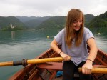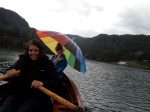 After hurrying up the crew back at camp by telling them there was only one boat left (!) we hopped into a rowing boat and rowed around the island!! Just as we rowed away from the shore the heavens opened-typical! But it didn’t stop the fun, we rowed around the lake, Ben and Hats tried to swap over mid lake action, then Hats slowly rowed us to the island (She didn’t quite have the rowing rhythm!!). We pottered around the island and hopped back in the boat, then i rowed back.