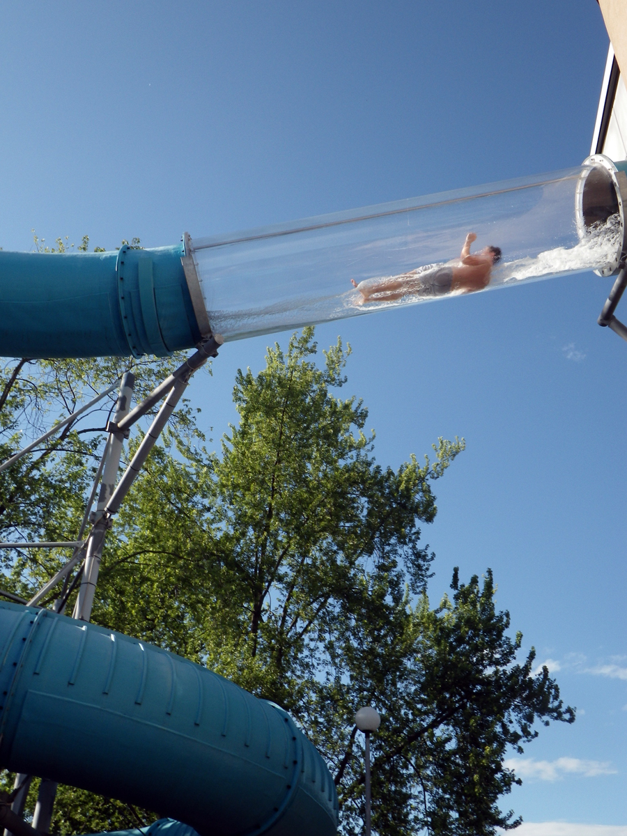 Ben going down the slide Published June 5, 2012 at 900 × 1200 in Fun times at a water park! ← Previous Next →