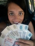 We also changed some Euros into the Hungarian FT…we now feel really rich! €1 to 300FT! It’s a pain when we get to a country not using the Euro as we have a Euro card but it makes it much more interesting and exciting to get a different currency (check out the pic of me excited-lol)!!