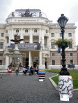We survived the night unscathed and headed into the centre of Bratislava. We parked in the brand new shopping centre, the spitting image of Westfields, and made the short walk along the river to the lovely little old town. We got a map and followed the walking route around the cobbled streets, up to Michaels gate and along to St Martins cathedral where we paid €2 to enter. We especially loved the bit where you could walk down to the Crypt where there were tons of old tombs…freaky! We then walked up the hill to the castle, which had been rebuilt in 1953 after a fire so was still pretty modern, but to make up for it there were great views of the river and the New Bridge (the longest suspension bridge in the world i believe!). We then wondered along the river, checking out the cool graffiti, had a quick look around the shopping centre then drove a few miles out of town to Devin castle where we walked around the ruins.