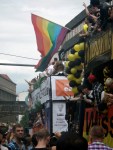 Saturday: We had a lie in, walked Jake and then caught the u-bahn into the centre, it was Christopher Street Day. Berlin was buzzing with people, dressed up in bright sparkly outfits, the atmosphere was amazing. We brought ourselves a Wurst and Brot and watched the parade go through the streets, music blaring out of the floats, people dancing like crazy and everyone looking like they were having a fab time. As soon as the floats passed the Holocaust memorial the music was turned off and everyone went into an eery silence, how very respectful. We then made our way back to the hotel in preperation for some Saturday night drinks to celebrate Ben’s birthday!