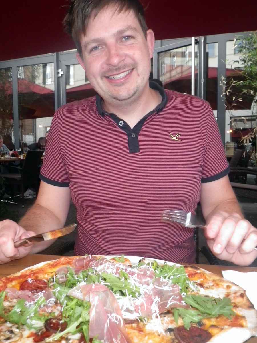 Huge pizza to line the stomachs! Published June 24, 2012 at 900 × 1200 in Berlin (by night) ← Previous Next →