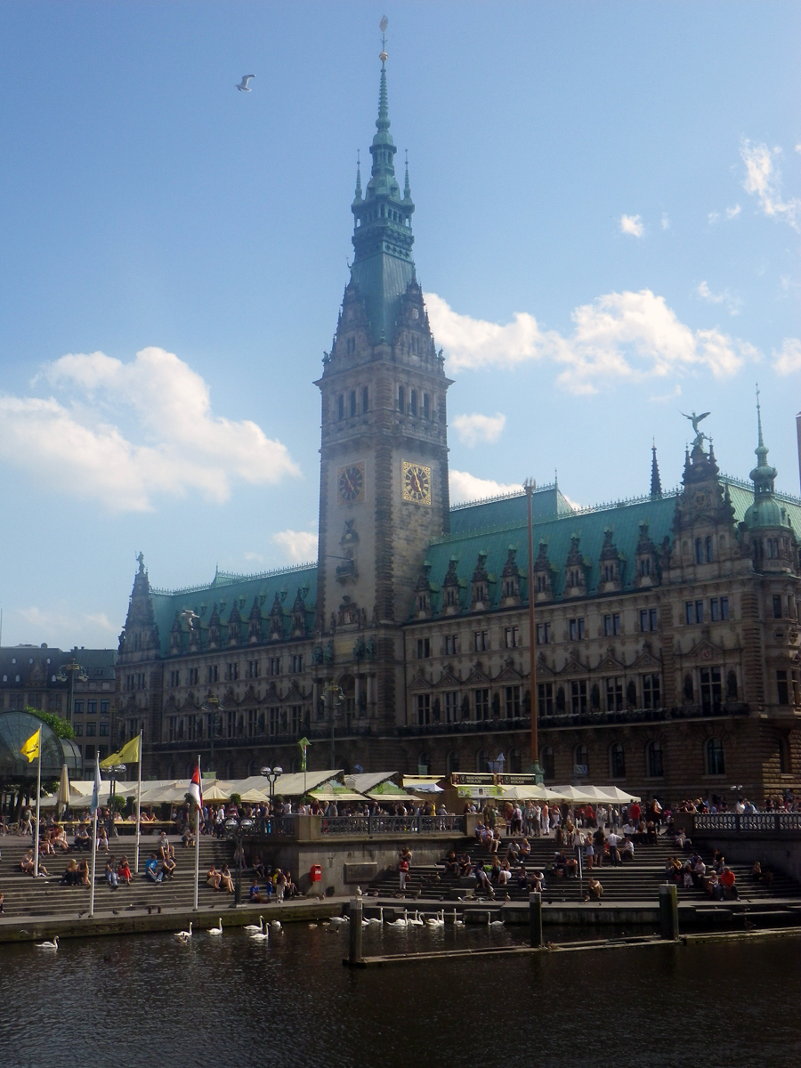 We wound our way back down to the streets below and walked up to the lake North of the city. Boats were out on the water and people lined the edge of the lake soaking up the sun, it reminded us of Zurich where the lake dominates the city. Hamburg felt like an older brother to Berlin, more grown up and powerful but less creative than his younger sibling!